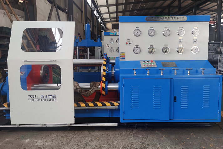 JWT型頂壓式閥門試驗(yàn)臺是我公司在多年生產(chǎn)閥門檢測設(shè)備經(jīng)驗(yàn)的基礎(chǔ)上自主研發(fā)的新一代頂壓式閥門測試臺并擁有國家技術(shù)專利知識產(chǎn)權(quán),專利號ZL2016 1 0240324.1.專為解決閥門制造廠、閥門使用等單位對無法蘭式<J61、J63、Z61>等閥門和法蘭式各種類閥門能在一機(jī)上進(jìn)行檢測試驗(yàn)的要求,按照《通用閥門的壓力試驗(yàn)》和《閥門的試驗(yàn)與檢測》的標(biāo)準(zhǔn)規(guī)范要求。本機(jī)集液壓、機(jī)電、試壓及液體介質(zhì)貯存循環(huán)使用于一體,具有結(jié)構(gòu)合理、功能完善、操作方便等特點(diǎn),廣泛用于公稱通徑DNl5-800mm各類高中低壓閥門的強(qiáng)度和密封。性能試驗(yàn)。最高密封試驗(yàn)壓力32.0MPa,強(qiáng)度試驗(yàn)48.0MPa。本設(shè)備廣泛用于閥門制造業(yè)和石油、石化、核電、化工等使用、閥門維修部門等單位的一種先進(jìn)理想的閥門檢測設(shè)備,主要用于閥門強(qiáng)度試驗(yàn)和閥門密封試驗(yàn)。